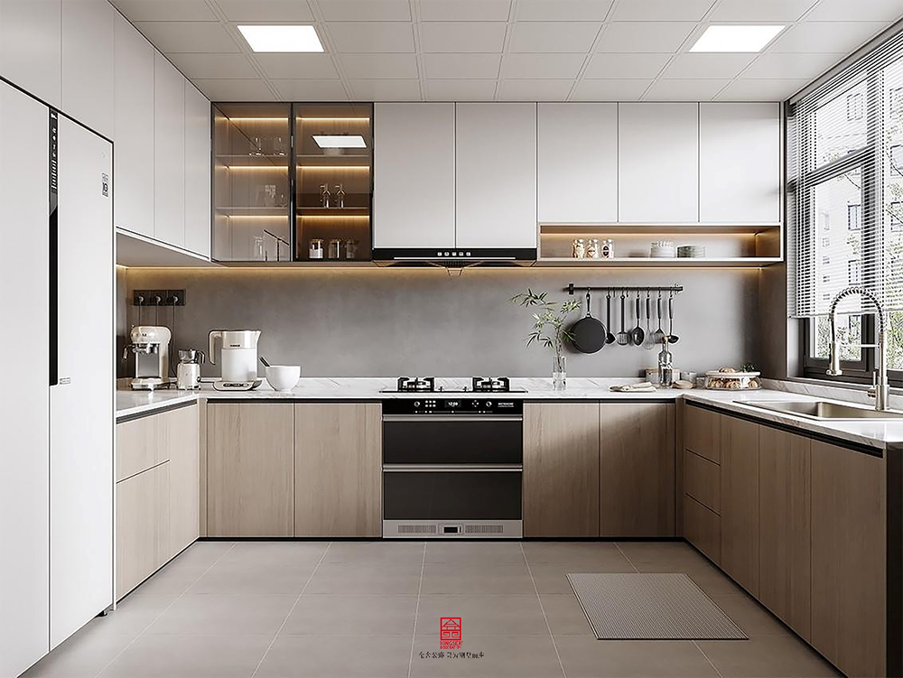 在细节处理上,墙面的挂杆设计,方便悬挂厨具,既美观又实用。橱柜内部的分层设计,使物品摆放更加有序。