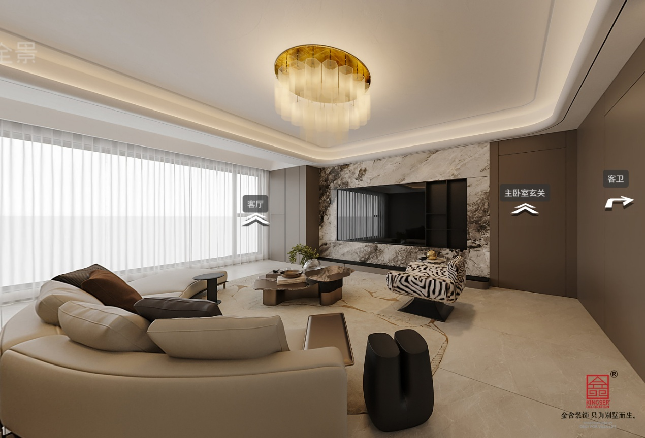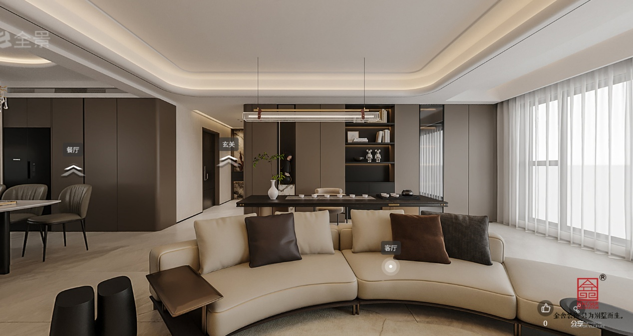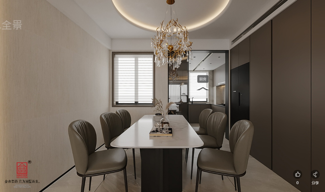 本方案以现代轻奢为核心风格,通过深棕与米白的色彩碰撞,营造出沉稳雅致的居住氛围。空间布局流畅,客餐厅一体通透,搭配弧形沙发与大理石背景墙,兼顾舒适与质感;餐厅区域以精致水晶吊灯与岩板餐桌,凸显仪式感。 主卧套房设计注重私密性与功能性,软包床头与暖光氛围灯传递温润休憩感,独立衣帽间与卫浴间实现功能分区,满足品质生活需求。整体以无主灯 + 线性灯的照明方式,结合木饰面与玻璃材质,在简约中彰显精致细节,打造兼具颜值与实用性的理想居所。